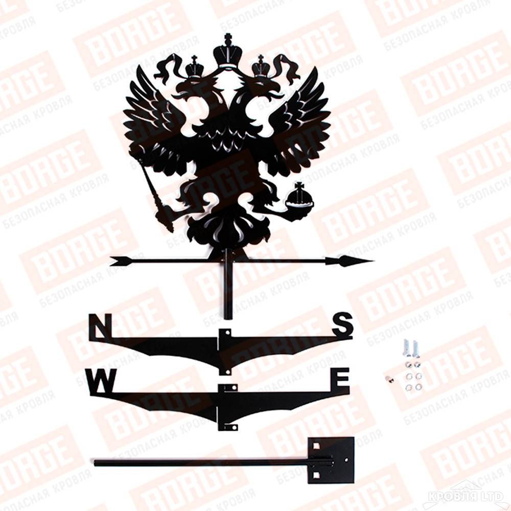 - Флюгер BORGE Герб РФ, 460х415мм, чёрный (RAL 9005 matt)