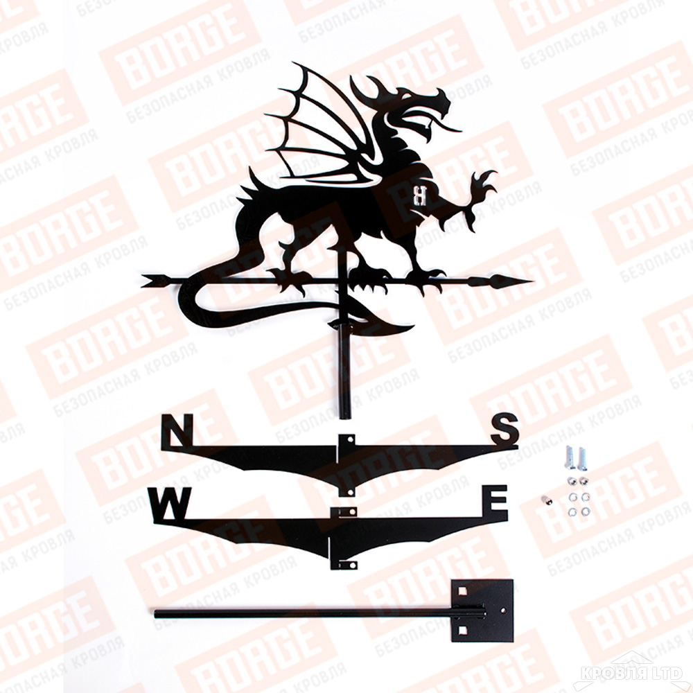 - Флюгер BORGE Дракон, 510х365мм, чёрный (RAL 9005 matt)