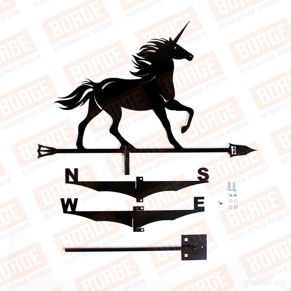 - Флюгер BORGE Единорог, 700х455мм, чёрный (RAL 9005 matt)