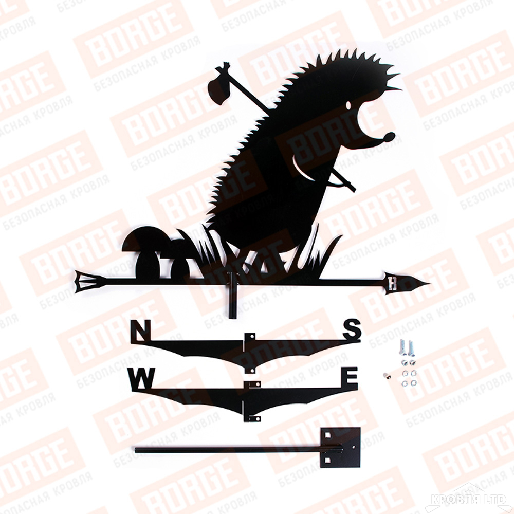- Флюгер BORGE Ежик в тумане, 700х500мм, чёрный (RAL 9005 matt)
