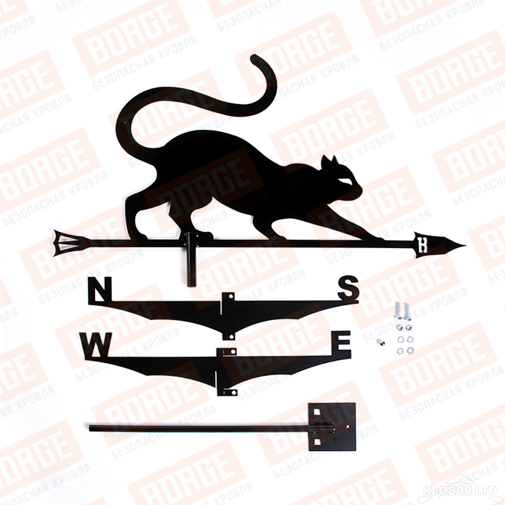 Флюгер BORGE Кошка, 700х350мм, чёрный (RAL 9005 matt)