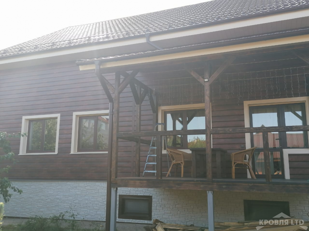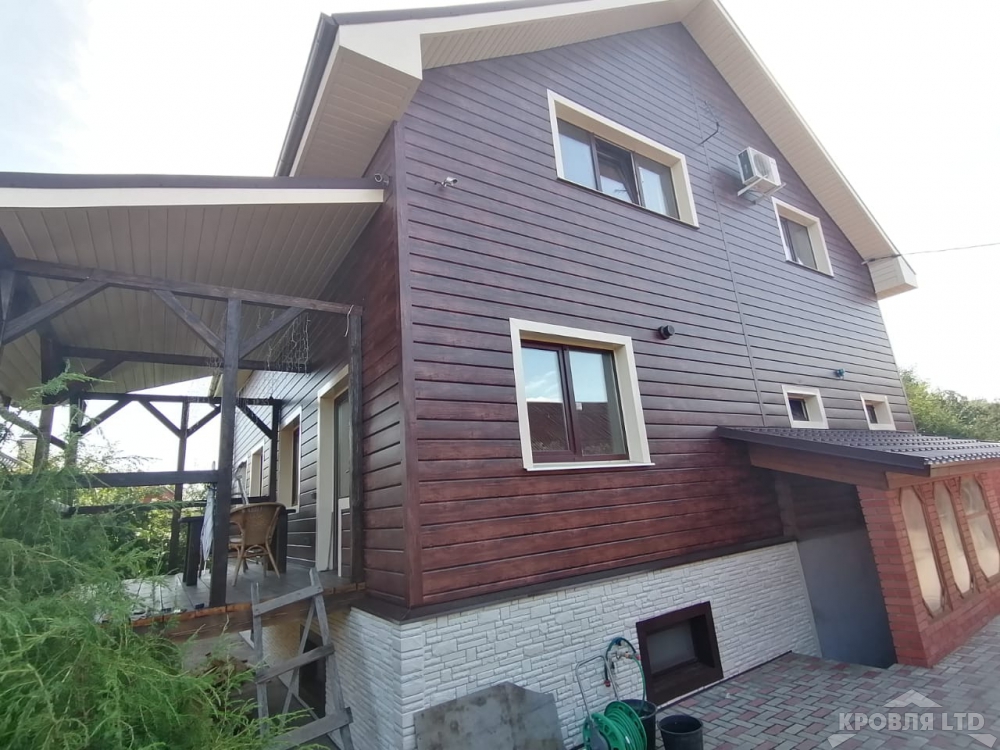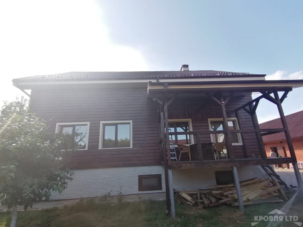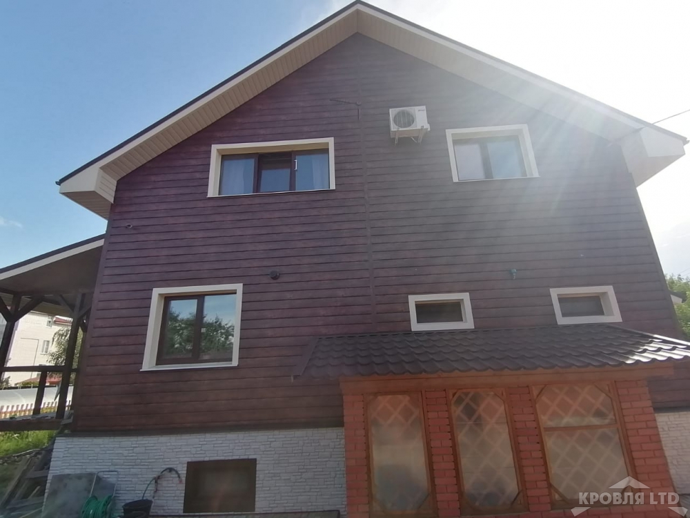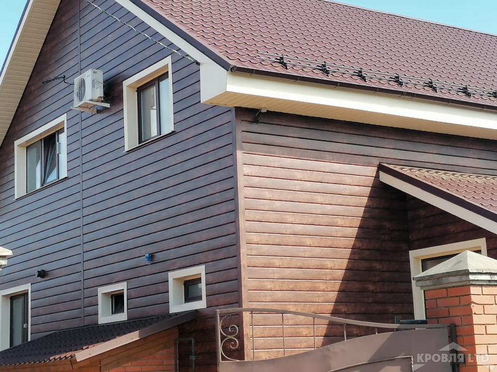 Металлсайдинг Евробрус Cherry Wood,Металлочерепица Хайстеп Стальной Бархат 8019,Фасадная панель Деке Стерн Новахо