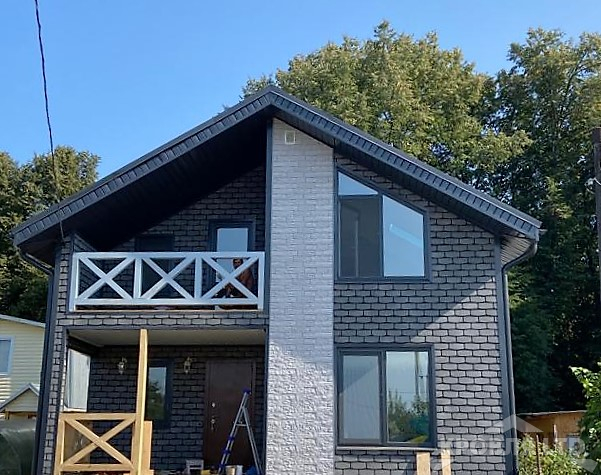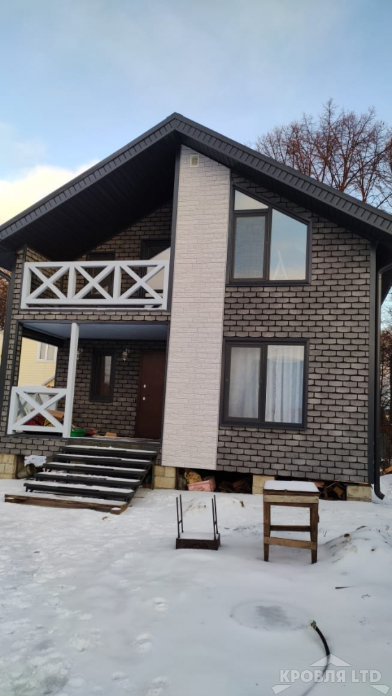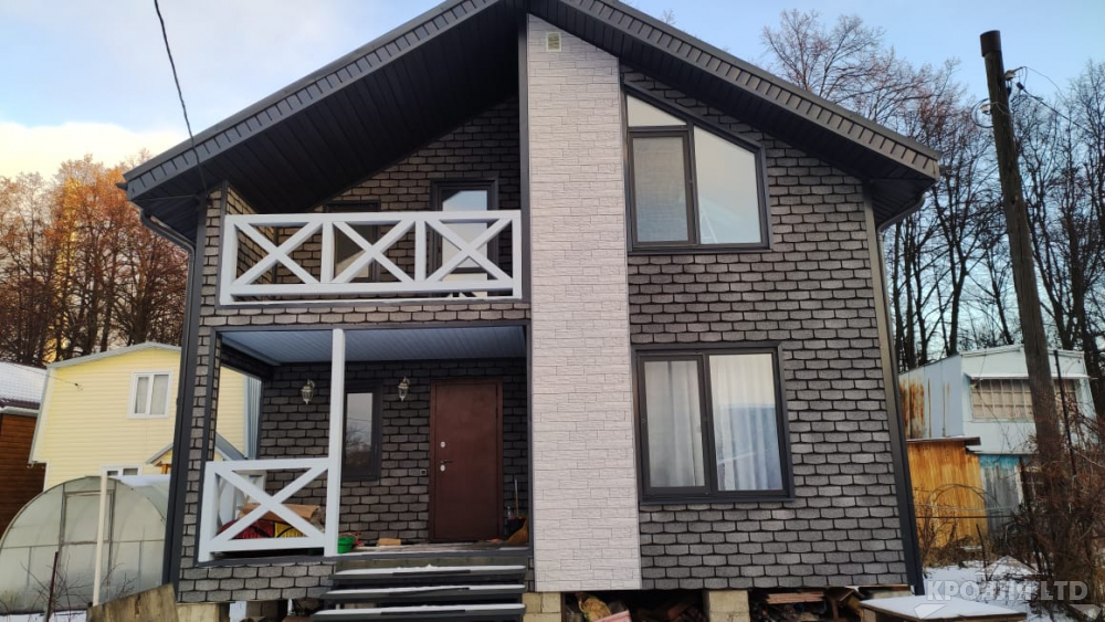 - Фасадная плитка ТEХНОНИКОЛЬ HAUBERK Камень цвет Сланец, Фасадная панель Декер Стейн Молочный, Профнастил С21 7024.